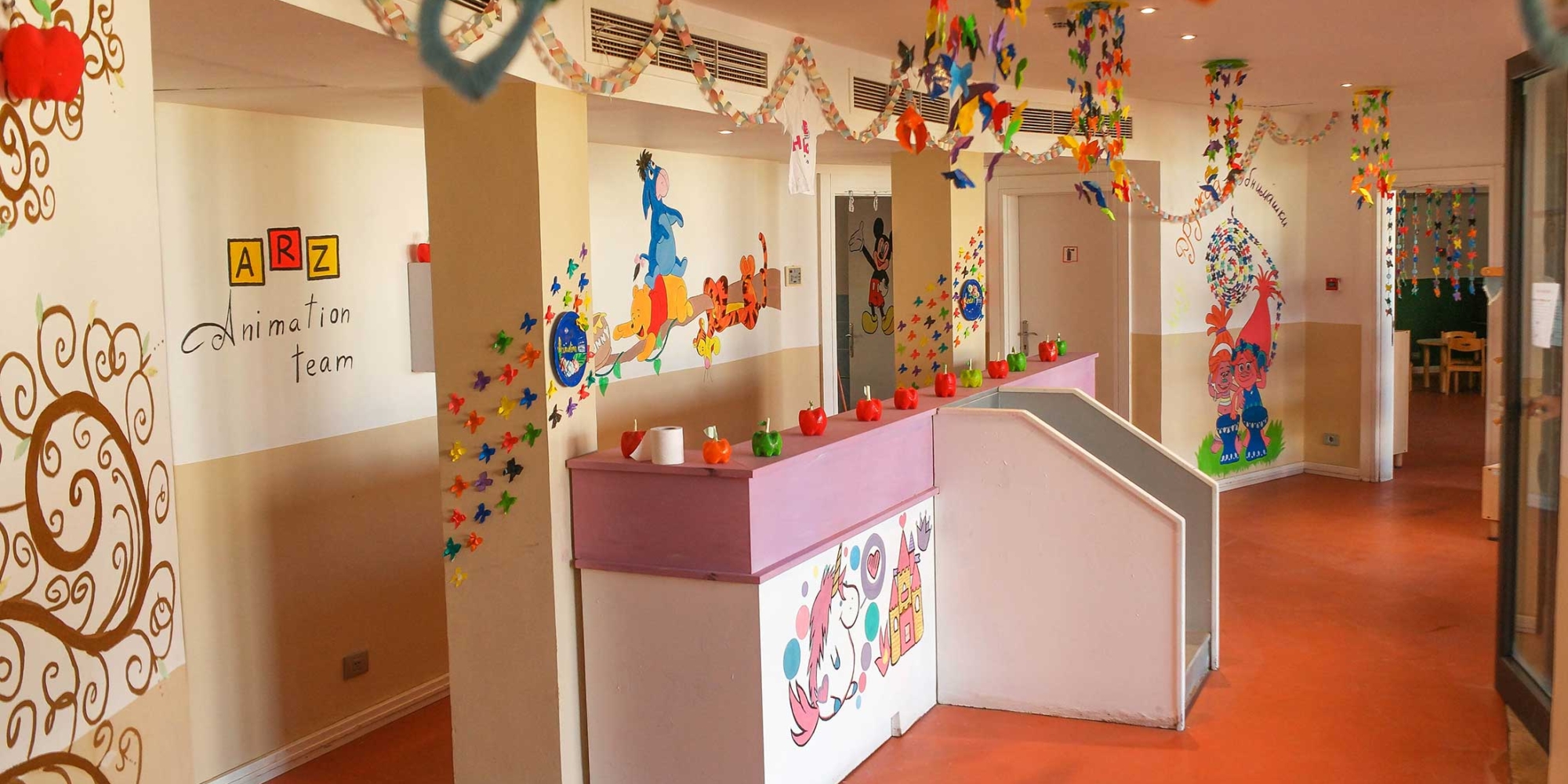 The kids club at Cleopatra Luxury Resort Sharm El Sheikh is fully supervised by an experienced team of child minders and animators. It boasts a spacious indoor air conditioned space, separated into zones. It is bright and colourful with murals on the walls, along with a number of kids tables and chairs for arts and crafts or board games. Soft chairs line the walls for relaxing and reading, while there is a wide selection of toys and games, including dolls houses, educational games, and board games.