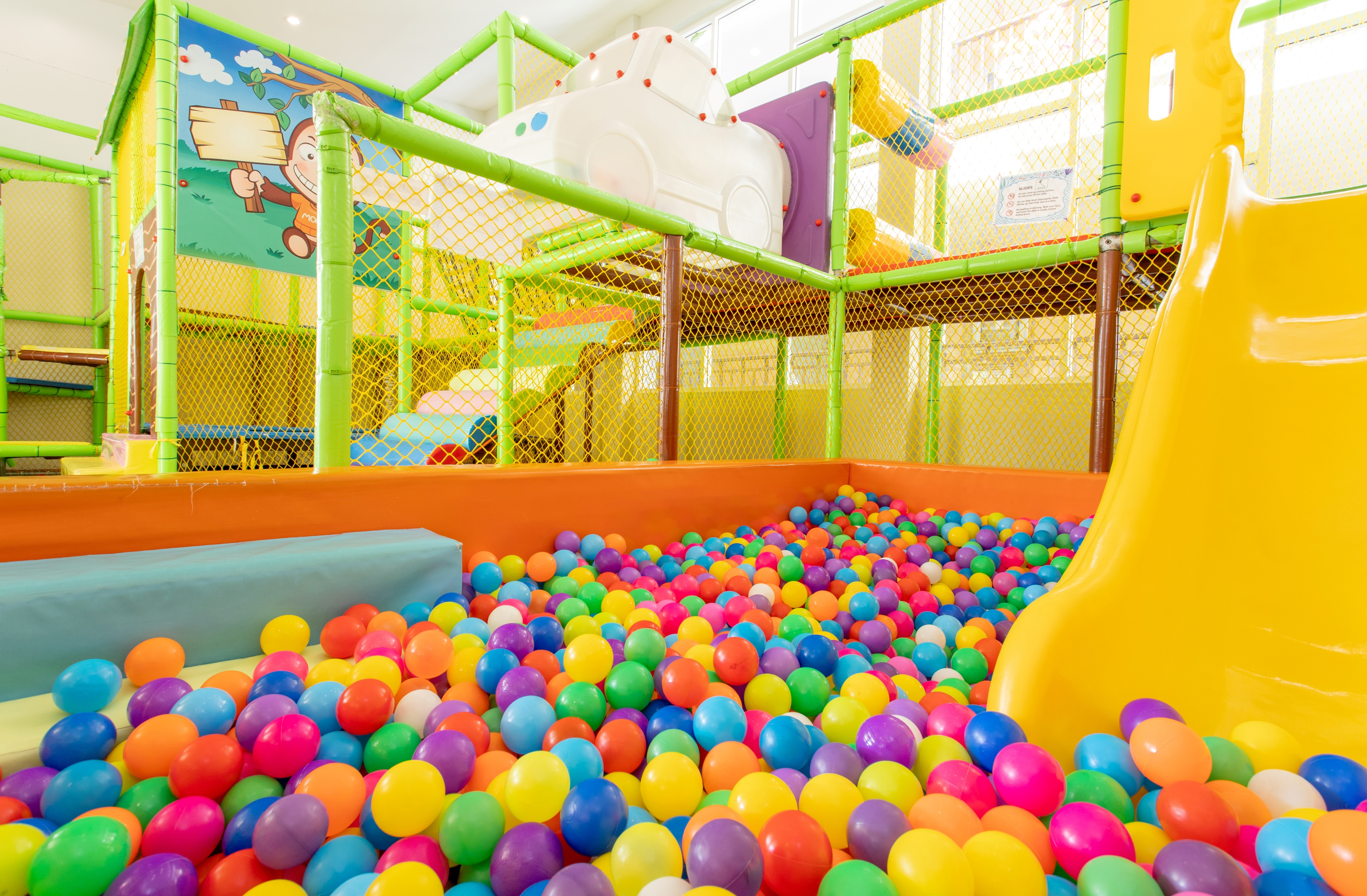 To the other side of the kids club is the indoor activity area that includes a large and colourful indoor obstacle course climbing frame that ends with a slide into the ball pool. This keeps children entertained and active, while keeping them out of the hot sun, ensuring their safety, and providing them with a chance of make new friends.