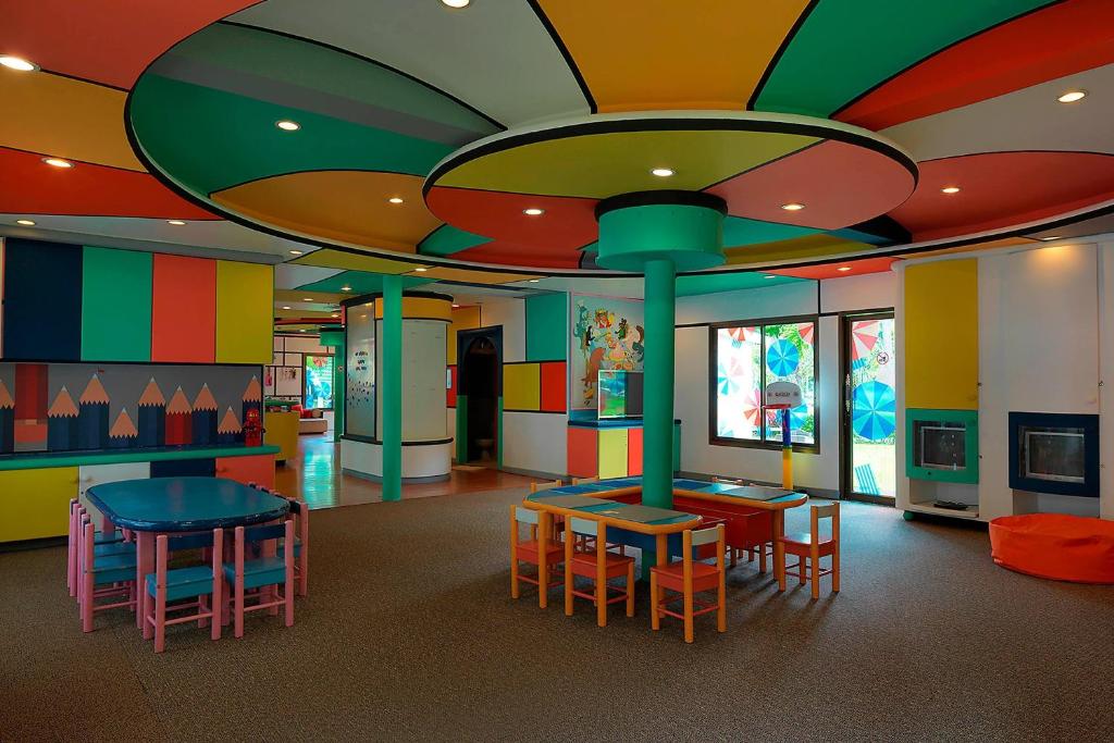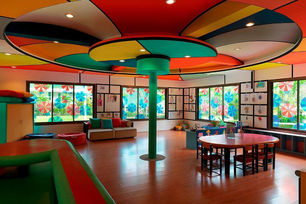 The purpose-built kids club at Le Meridien Phuket Beach Resort offers fully supervised entertainment for younger guests, with an experienced team of child minders who entertain and engage the children, encouraging them to take part in activities and make new friends. This is a very colourful and spacious kids club, offering an indoor play and crafts area, along with an outdoor play area. The indoor area is fully carpeted with tables and chairs dotted about for arts and crafts and other indoor activities. Soft bean bags are scattered on the floor for games, puzzles, and reading.