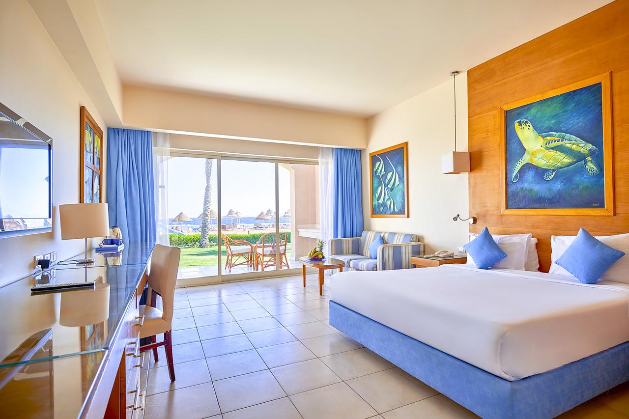 The Standard Room is a spacious air conditioned guest room with private balcony and garden views. This room offers a king sized bed or two single beds, along with a mini bar, television, and en-suite bathroom. The Superior Room is a well-appointed and comfortable king room with private balcony and panoramic Red Sea views, along with mini bar and an en-suite bathroom with complimentary toiletries. Guests can also select the Marine Club Room, a modern guest room with sea views, air conditioning, and mini bar. This room includes a fruit basket on arrival, along with a turn down service. Families can book the Junior Suite, a spacious private suite with balcony and spectacular views.