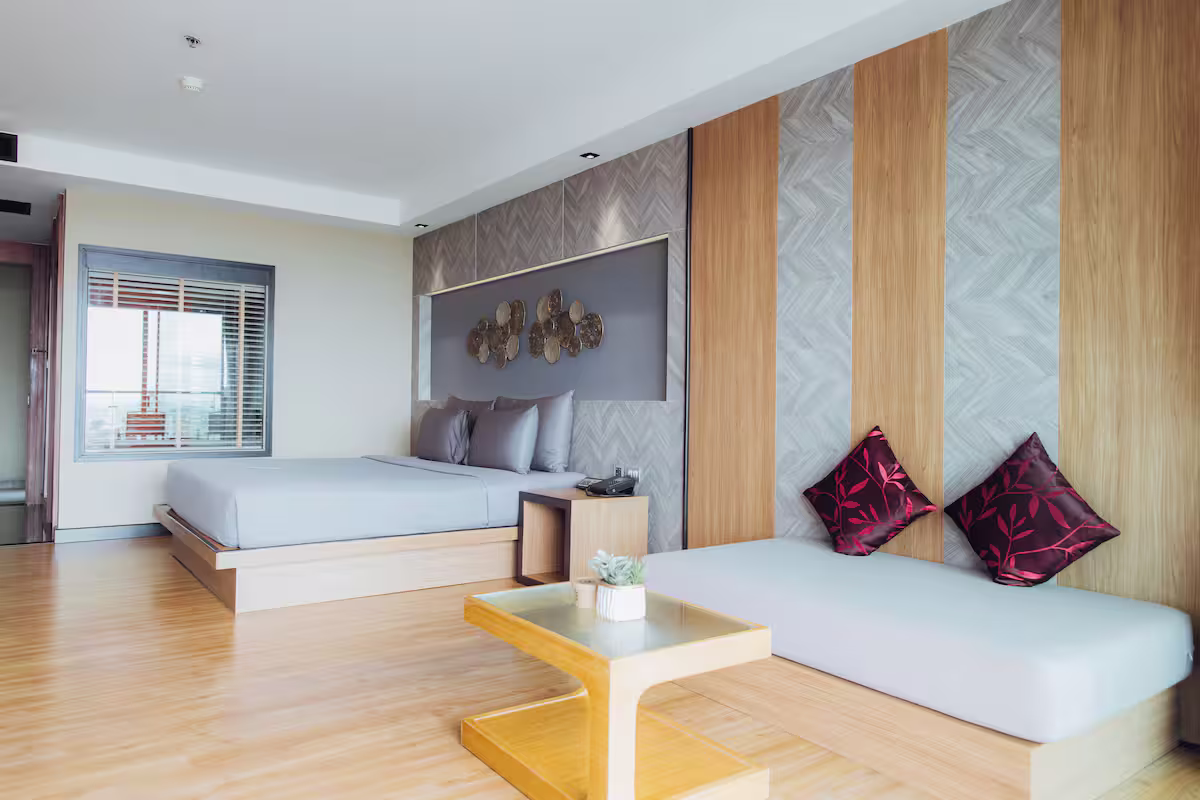 The forty two square metre Deluxe Double or Twin Room is a spacious air conditioned guest room, located on a lower floor, with private balcony, seating area, and en-suite bathroom with shower. The Corner Ocean Panoramic guest room is a spacious fifty six square metre guest room with air conditioning, balcony, and sea or city views. This room boasts a mini bar, cable television, and en-suite with shower. The fifty eight square metres The Senses Suite, boasts a private balcony with sea views. This air conditioned guest suite includes a separate living area, cable television, mini bar, spa bath, and en-suite. The Two Bedroom Pool Villa offers the ultimate in space, spanning over two hundred and twenty square metres. This air conditioned villa offers a private kitchen, private pool, and cable television. It boasts two bathrooms with walk-in shower., ideal for families or groups.